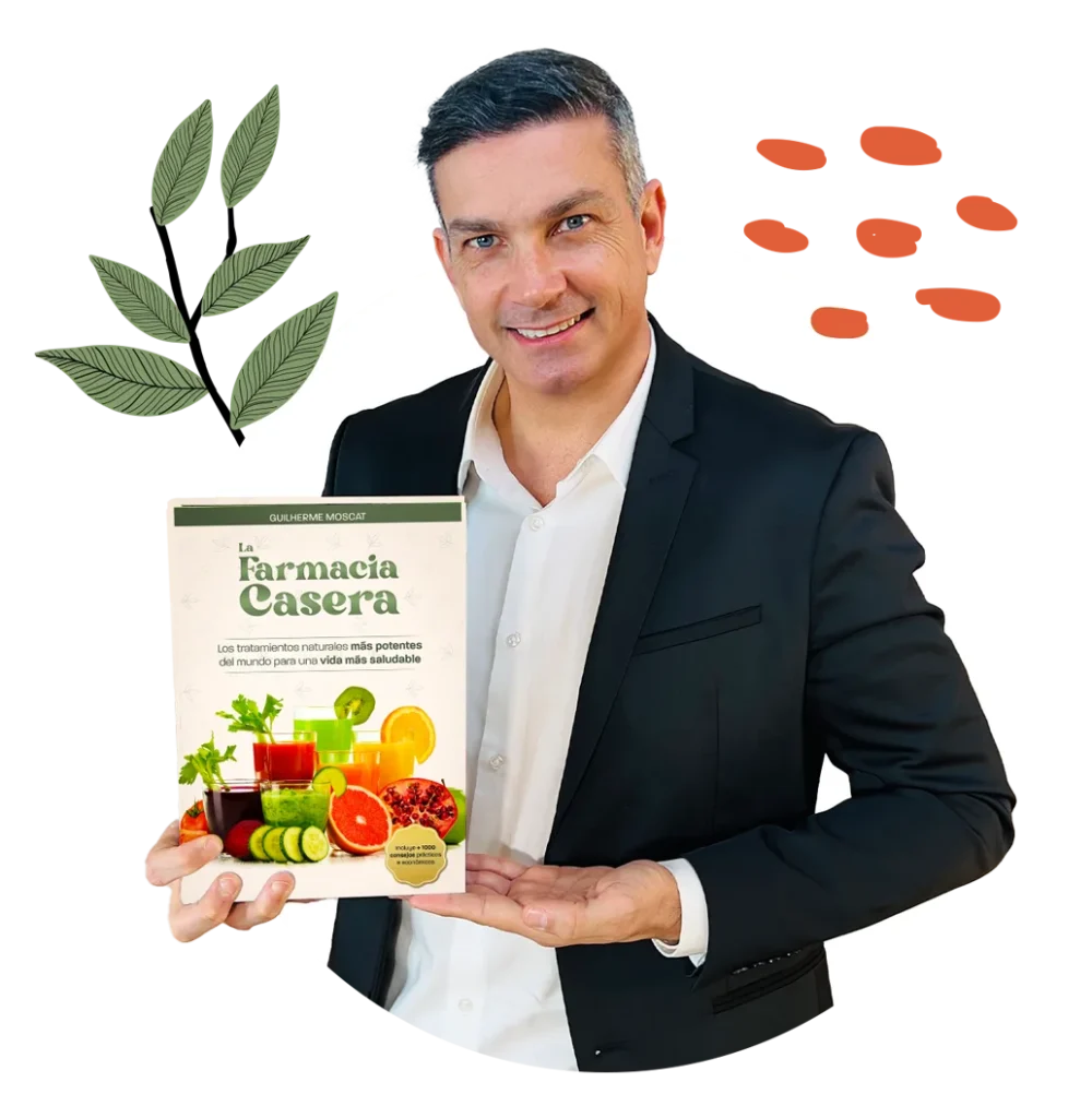 Guilherme Moscat es autor de tres libros, incluido el renombrado “La Farmacia Casera”. Reconocido como un especialista en tratamientos naturales, desde 2008, Guilherme ha sido una presencia constante en diversos programas de salud en la televisión, tanto en Europa como en América del Sur. A lo largo de su carrera, ha ayudado a miles de personas a mejorar su salud mediante las propiedades curativas de las plantas, frutas y verduras. En “La Farmacia Casera”, Guilherme comparte su vasto conocimiento, ofreciendo un recurso esencial para quienes buscan soluciones naturales y eficaces para la salud.